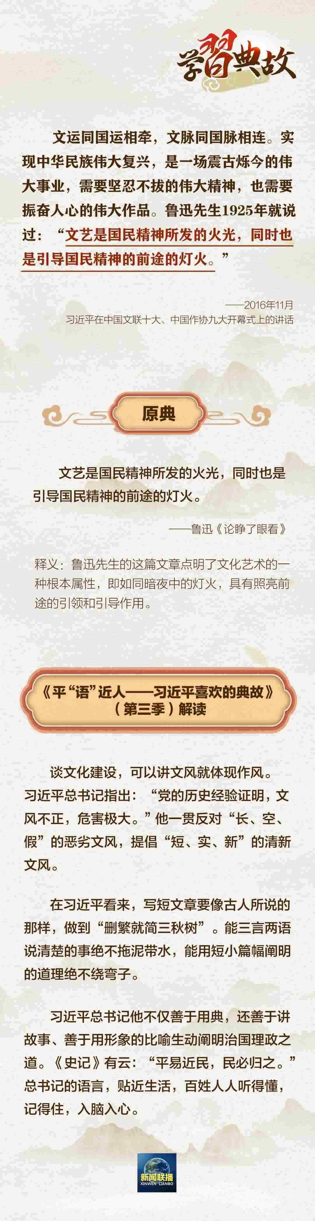 文運同國運相牽,文脈同國脈相連。文化自信是一個國家、一個民族發(fā)展中,最基本、最深沉、最持久的力量。黨的二十大報告中指出:“全面建設社會主義現(xiàn)代化國家,必須堅持中國特色社會主義文化發(fā)展道路。”圍繞“文化建設”這一主題,總書記曾講到哪些典故?一起學習↓↓↓