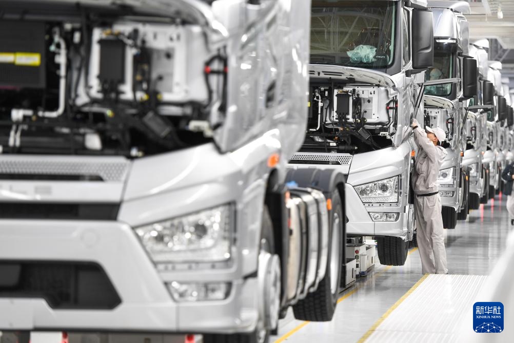 ??2024年2月19日,工人在位于吉林省長春市的一汽解放J7整車智能工廠裝配車輛。新華社記者 張楠 攝