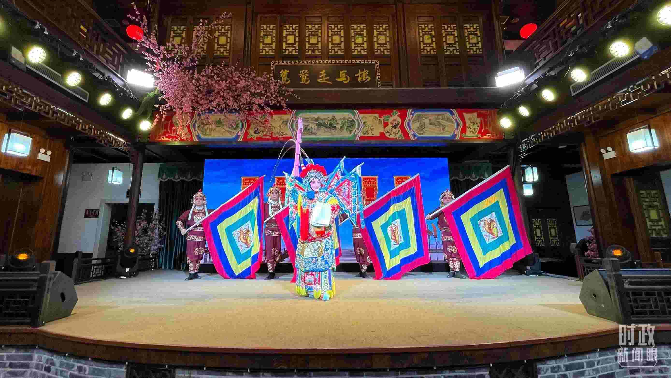 △常德河街,鴛鴦走馬樓上演常德高腔《穆桂英掛帥》和澧水船工號(hào)子。(總臺(tái)央視記者許永松、國(guó)廣記者李晉拍攝)