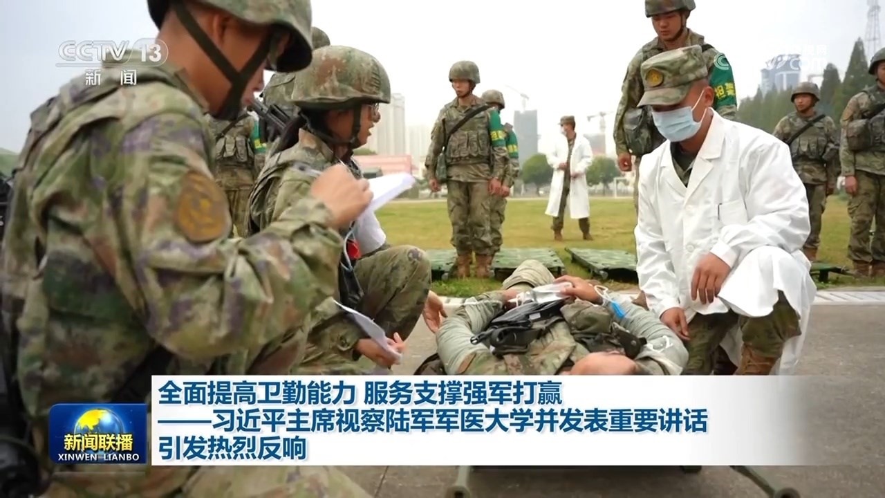 央視網(wǎng)消息(新聞聯(lián)播):中共中央總書記、國家主席、中央軍委主席習(xí)近平4月23日到陸軍軍醫(yī)大學(xué)視察,強調(diào)面向戰(zhàn)場、面向部隊、面向未來,努力建設(shè)世界一流軍醫(yī)大學(xué)。廣大官兵認(rèn)真學(xué)習(xí)領(lǐng)會講話精神,表示要牢記統(tǒng)帥勉勵囑托,聚焦練兵備戰(zhàn),加快創(chuàng)新發(fā)展,全面提升衛(wèi)勤保障能力,為強軍打贏提供有力支撐。
