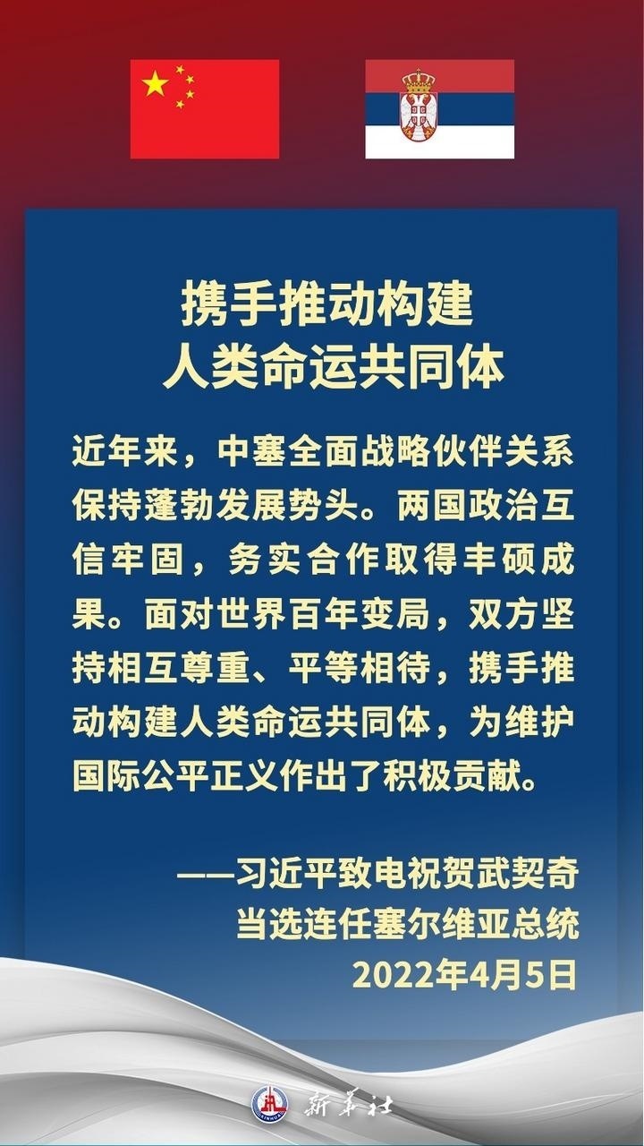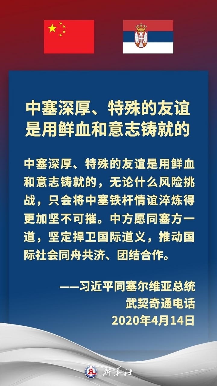 塞爾維亞是中國在中東歐地區(qū)首個全面戰(zhàn)略伙伴。近年來,在習(xí)近平主席和武契奇總統(tǒng)戰(zhàn)略引領(lǐng)下,中塞關(guān)系保持高水平運行,雙方堅定支持彼此核心利益和重大關(guān)切,兩國政治互信牢固,高質(zhì)量共建“一帶一路”取得豐碩成果,在多邊領(lǐng)域協(xié)調(diào)緊密。習(xí)近平主席多次在重要場合提及,中國和塞爾維亞是“鐵桿朋友”。