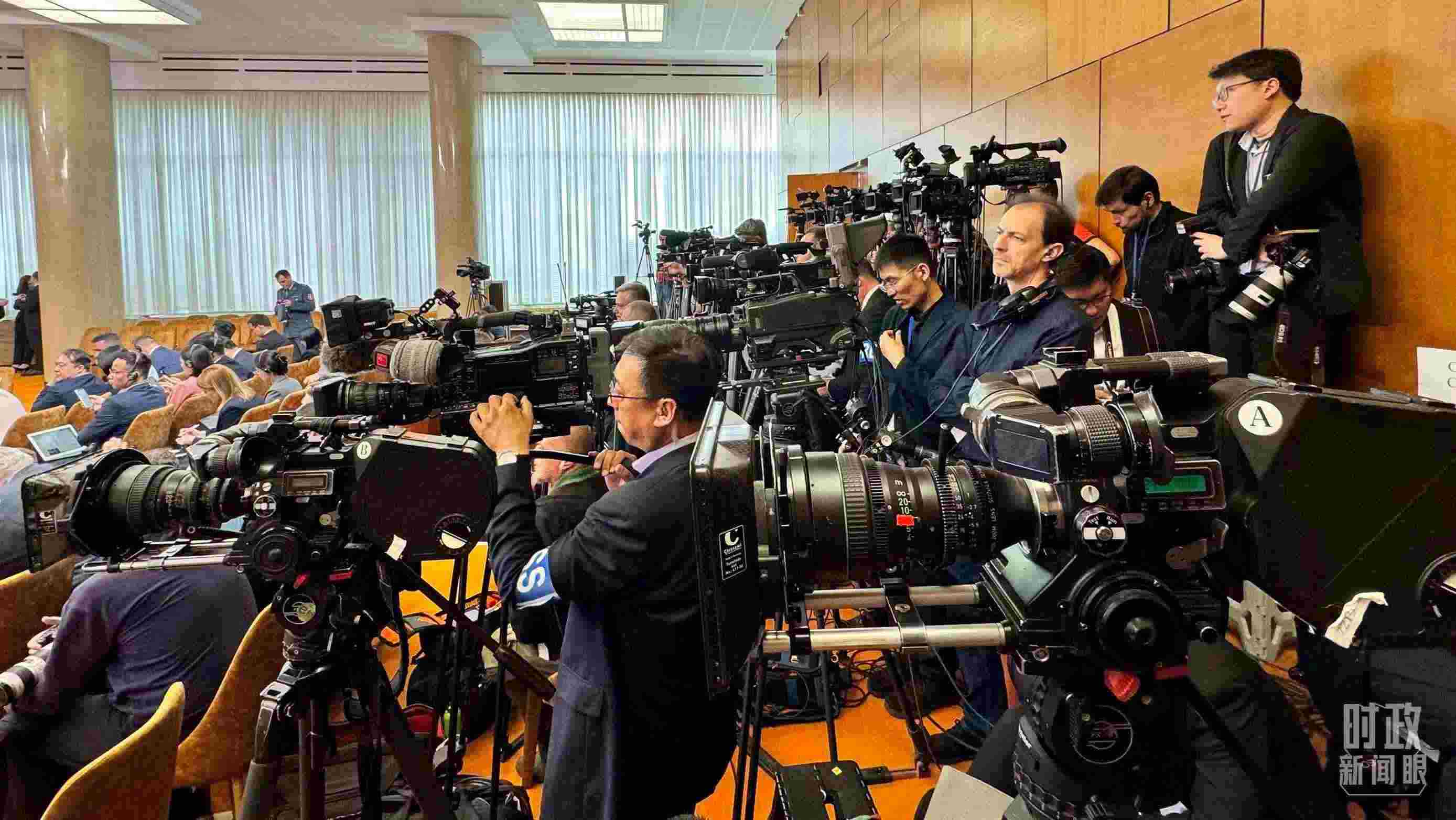 △這是中塞兩國(guó)元首共見記者開始前的現(xiàn)場(chǎng),記者云集。(總臺(tái)央視記者李增仁拍攝)