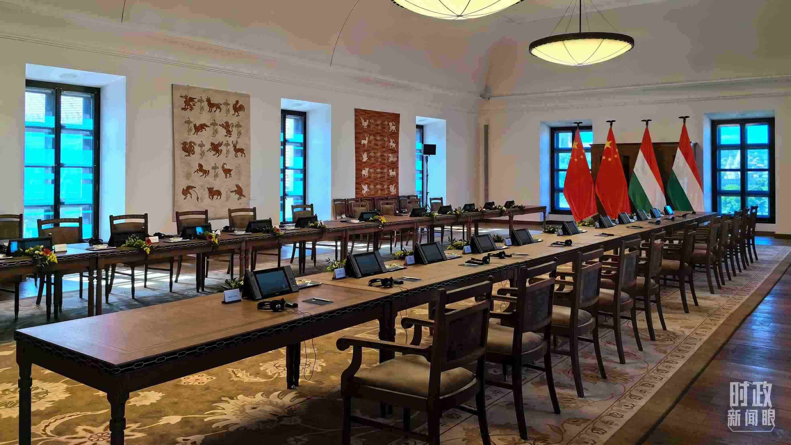 △5月9日,習(xí)主席同匈牙利總理歐爾班在這里舉行會(huì)談。這是會(huì)談開始前的現(xiàn)場(chǎng)。(總臺(tái)央視記者陸泓宇拍攝)