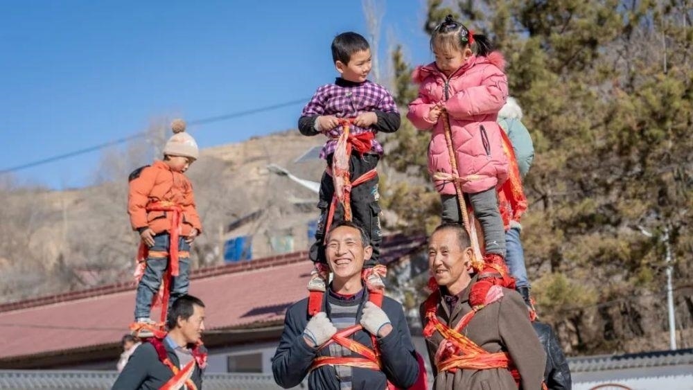 △寧夏固原市隆德縣觀莊鄉(xiāng)陽洼村村民在排練扛社火。