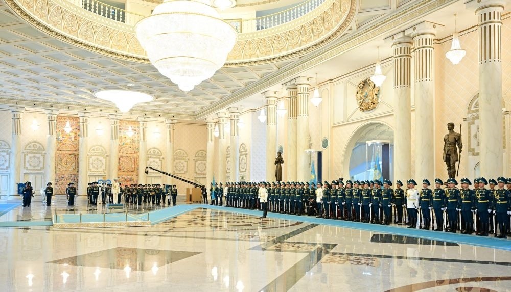 當(dāng)?shù)貢r(shí)間3日,國(guó)家主席習(xí)近平在阿斯塔納出席哈薩克斯坦總統(tǒng)托卡耶夫舉行的歡迎儀式。