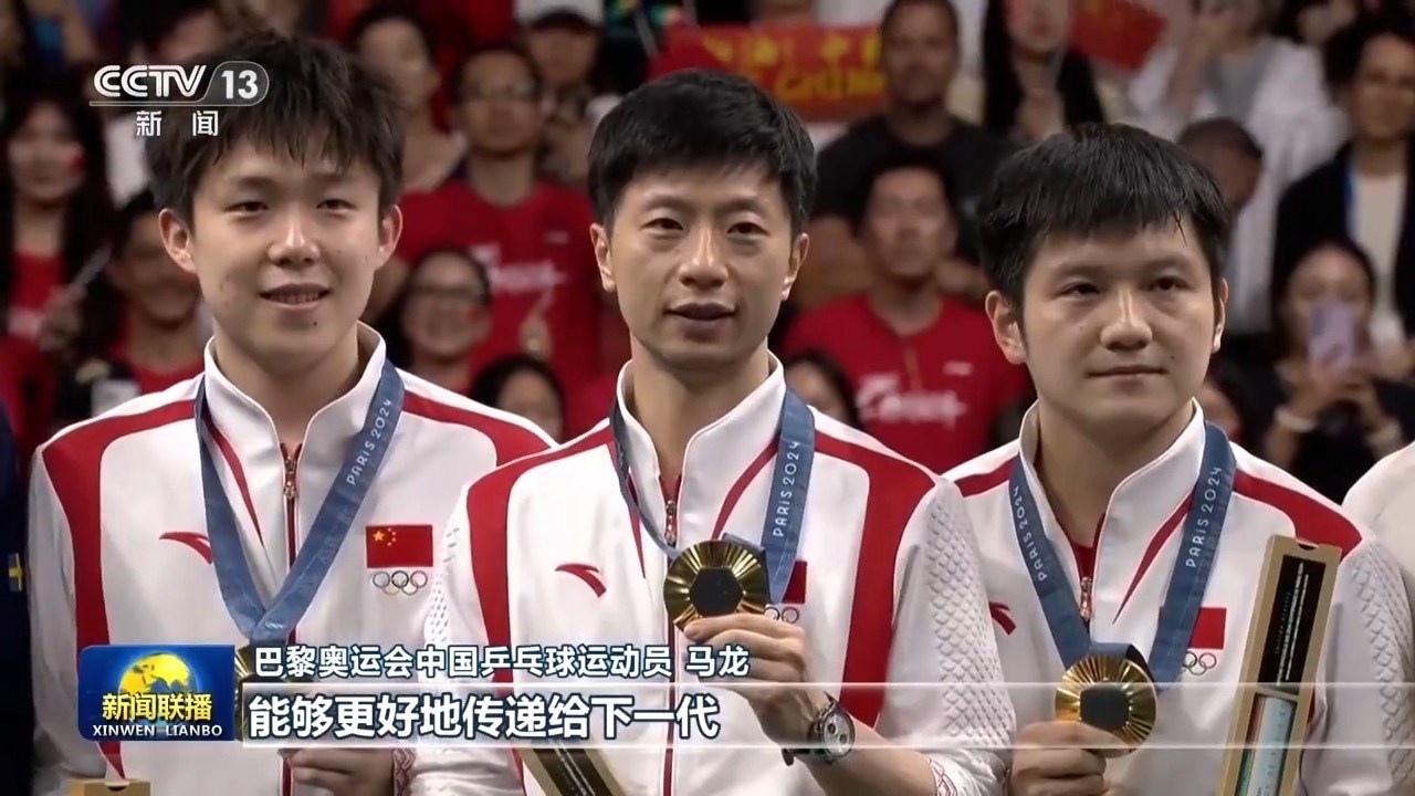 巴黎奧運(yùn)會(huì)中國乒乓球運(yùn)動(dòng)員 馬龍:首先能夠在新中國成立75周年之際,不光是我自己拿到第六枚奧運(yùn)金牌,同時(shí)能夠中國代表團(tuán)在海外也取得最好成績,我還是非常開心,也非常榮幸。作為我來說,希望能夠把自己的一些比賽經(jīng)驗(yàn)以及一些對(duì)于乒乓球項(xiàng)目的理解,能夠更好地傳遞給下一代,然后希望他們能夠繼續(xù)為我們中國體育事業(yè)獻(xiàn)出自己的一份力量。