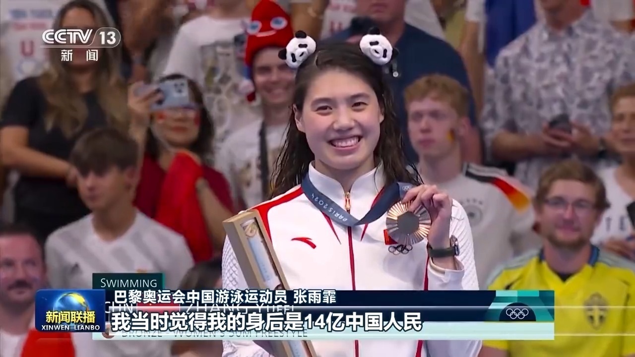 巴黎奧運(yùn)會(huì)中國游泳運(yùn)動(dòng)員 張雨霏:沒有想到他當(dāng)時(shí)走在我們跟前,每一名運(yùn)動(dòng)員的成績和名字他都記住了,然后就是親切地與我們交談,每個(gè)人交談的內(nèi)容都不一樣。我覺得生在中國真好,特別是在賽場(chǎng)上的時(shí)候,我沒有拿到冠軍,但是我看見一面面五星紅旗,他們依然在為我加油吶喊,安慰我,我當(dāng)時(shí)覺得我的身后是14億中國人民。