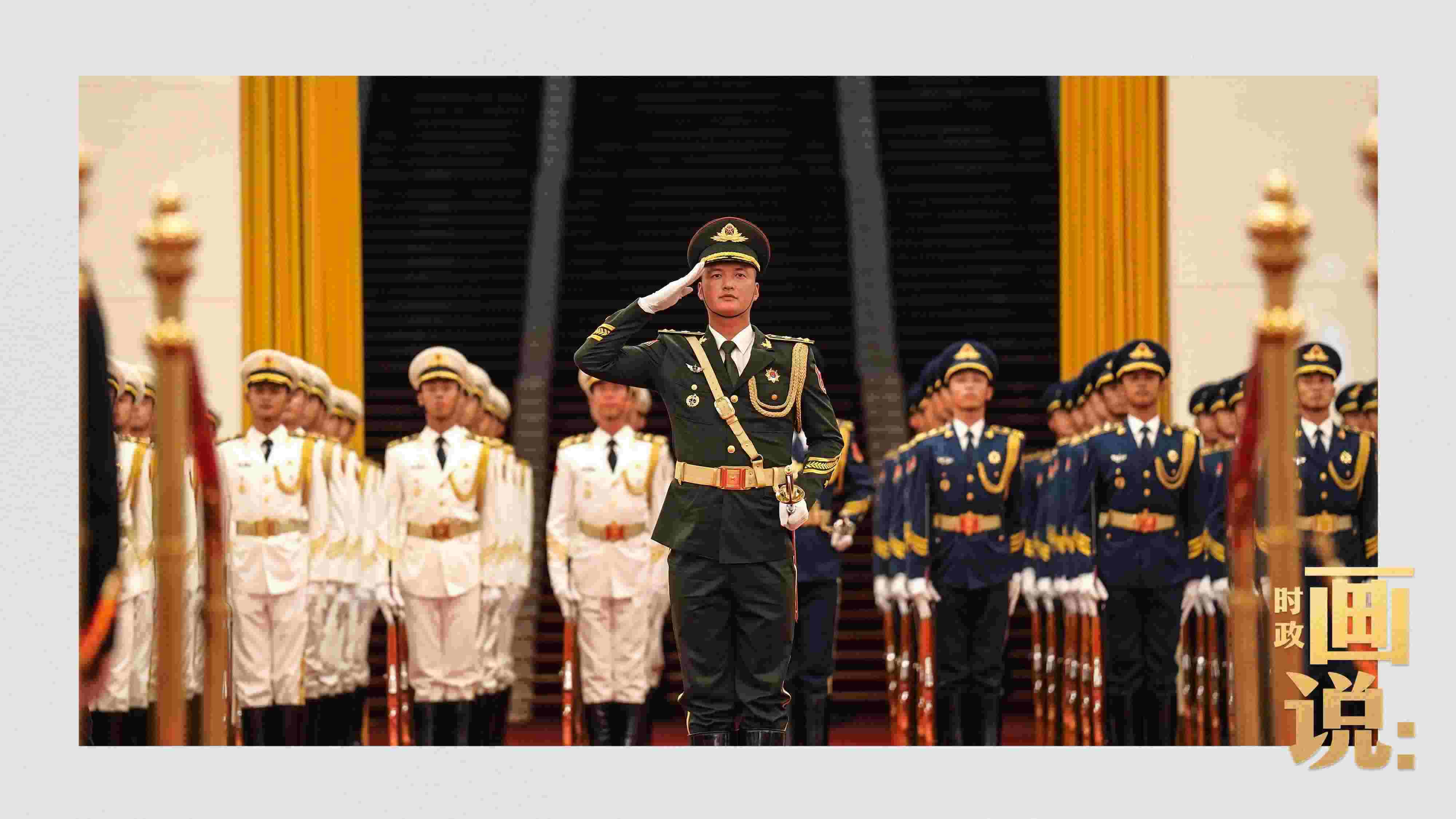 △南非總統(tǒng)拉馬福薩檢閱中國人民解放軍三軍儀仗隊(duì)。