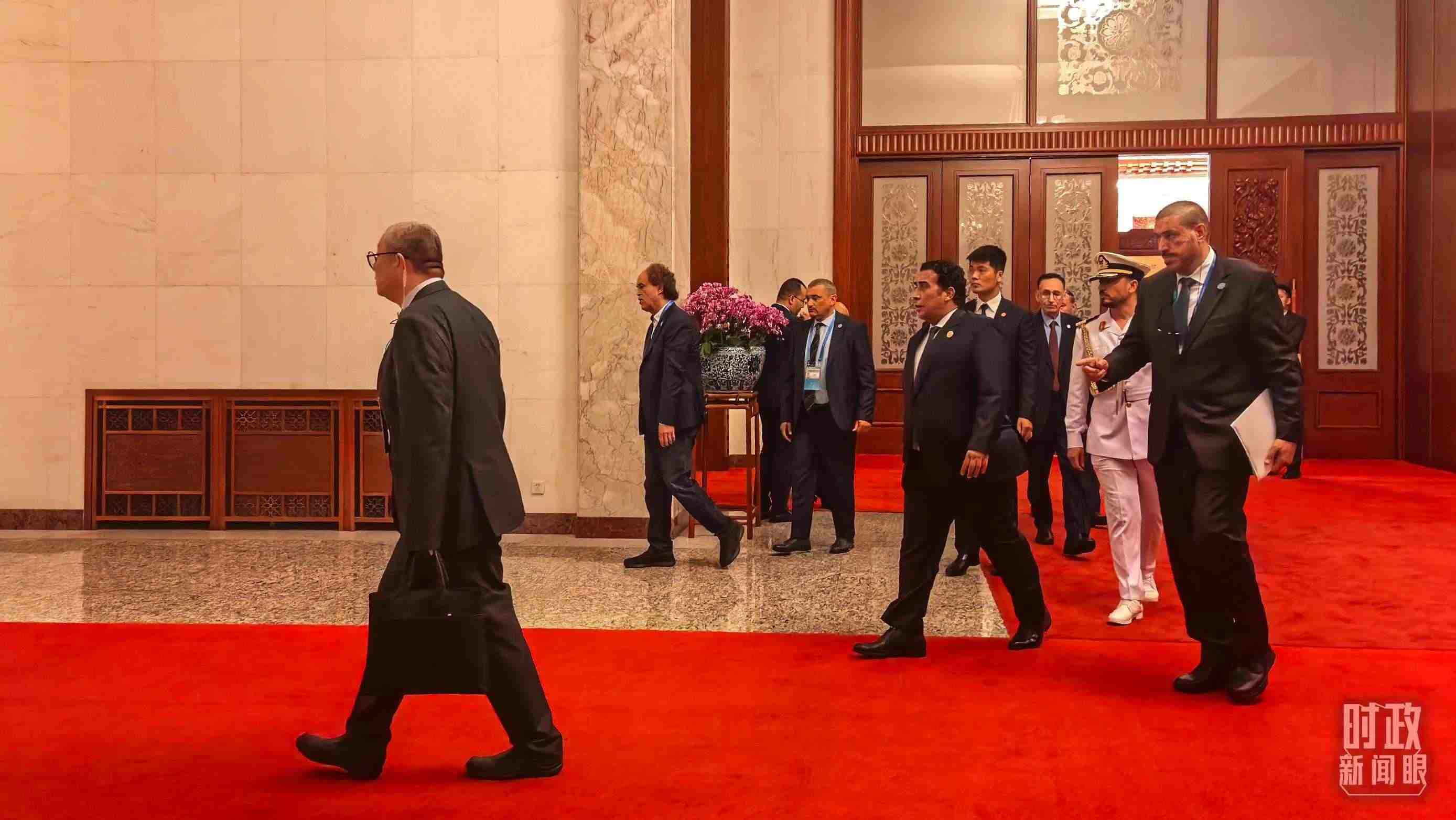 △非洲國家領(lǐng)導人步入人民大會堂。(總臺央視記者趙怡彬拍攝)