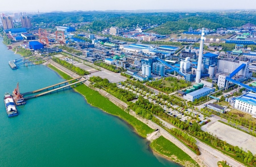 這是位于湖北省宜昌市的興發(fā)集團(tuán)宜昌新材料產(chǎn)業(yè)園(2022年4月19日攝,無人機(jī)照片)。新華社發(fā)