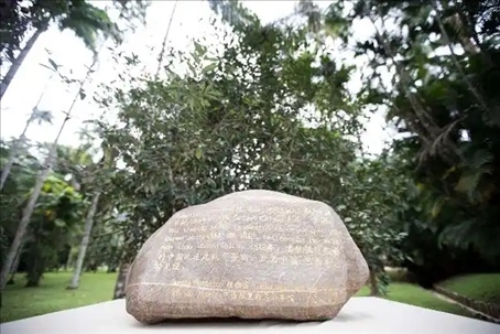 △巴西里約熱內盧植物園,來自中國福建的華安石紀念牌記載:“1812年,首批抵達巴西的中國人在此栽下茶樹”。