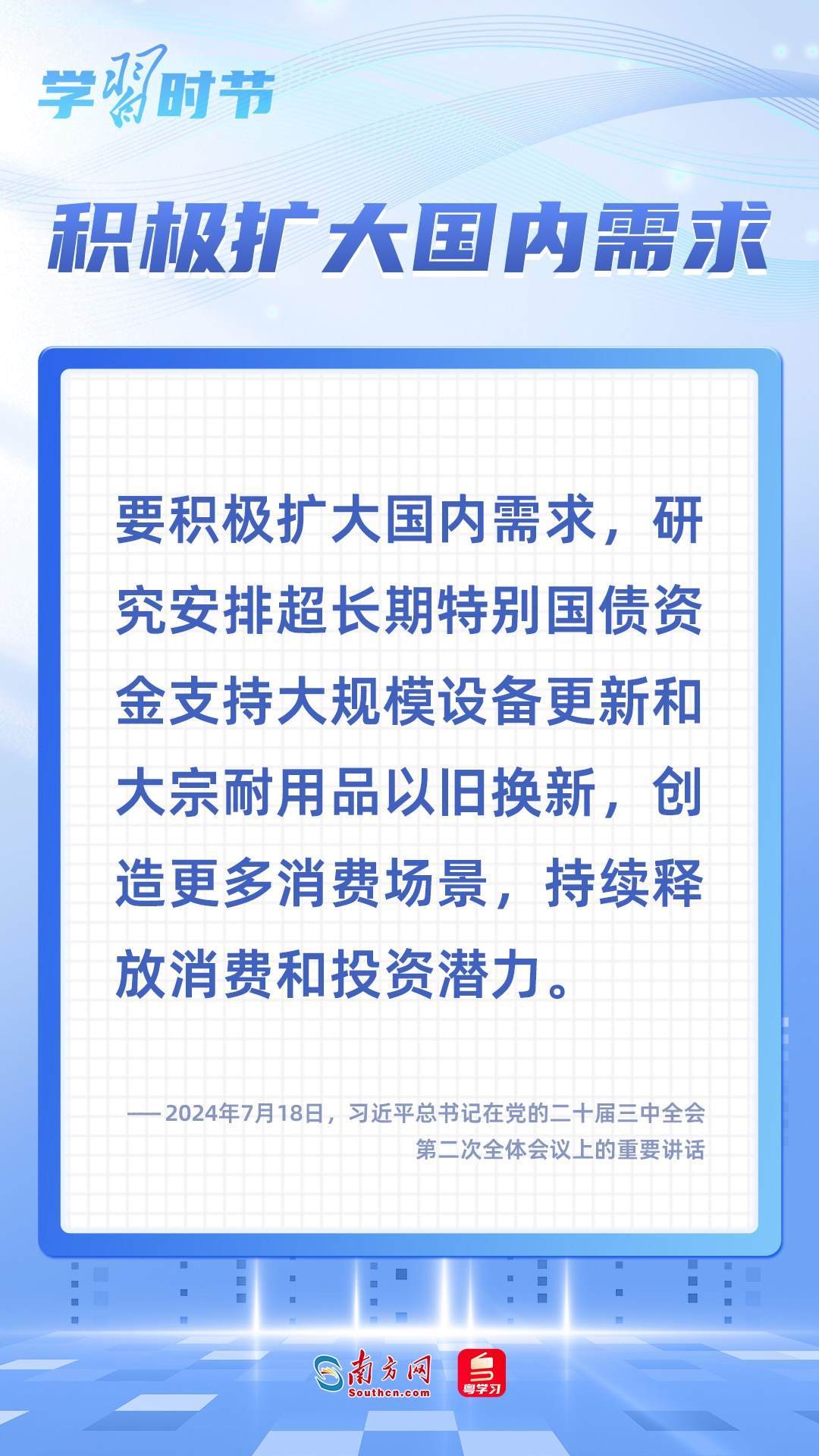 內(nèi)需是經(jīng)濟(jì)發(fā)展的基本動(dòng)力,實(shí)施擴(kuò)大內(nèi)需戰(zhàn)略,是保持我國經(jīng)濟(jì)長期持續(xù)健康發(fā)展的需要。習(xí)近平總書記多次在不同場(chǎng)合就擴(kuò)大國內(nèi)需求作出一系列重要論述和重要部署,讓我們一起學(xué)習(xí)。