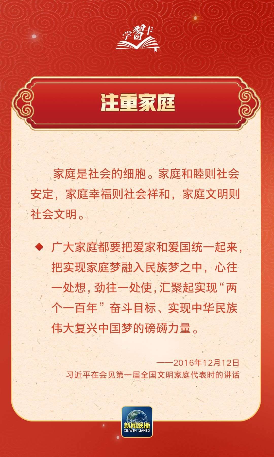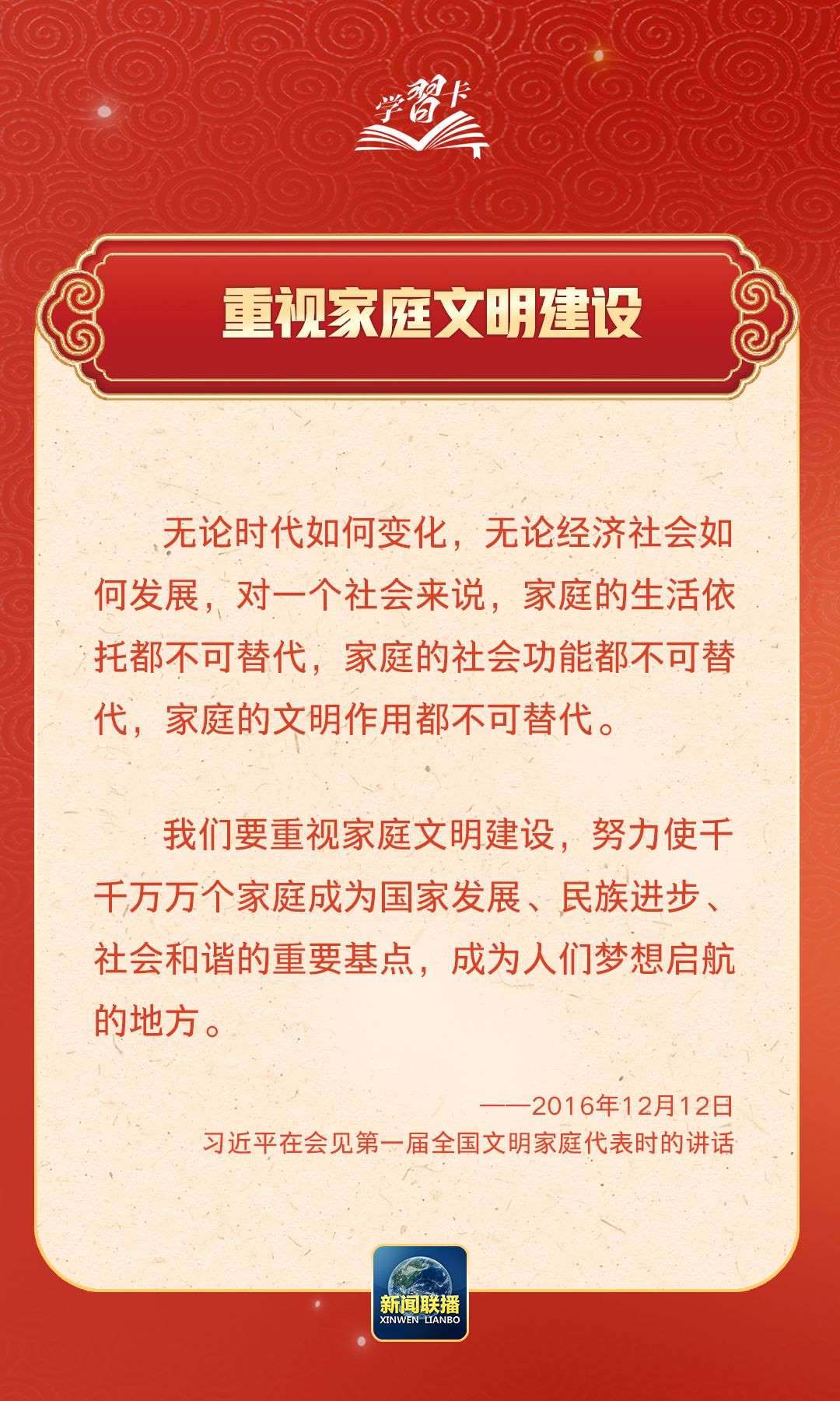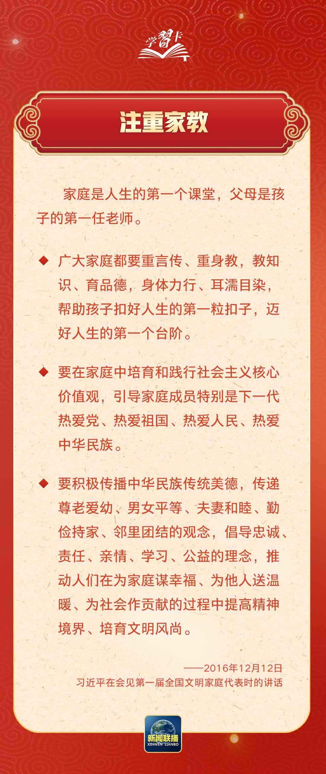學(xué)習(xí)卡丨習(xí)近平:以千千萬(wàn)萬(wàn)家庭的好家風(fēng)支撐起全社會(huì)的好風(fēng)氣