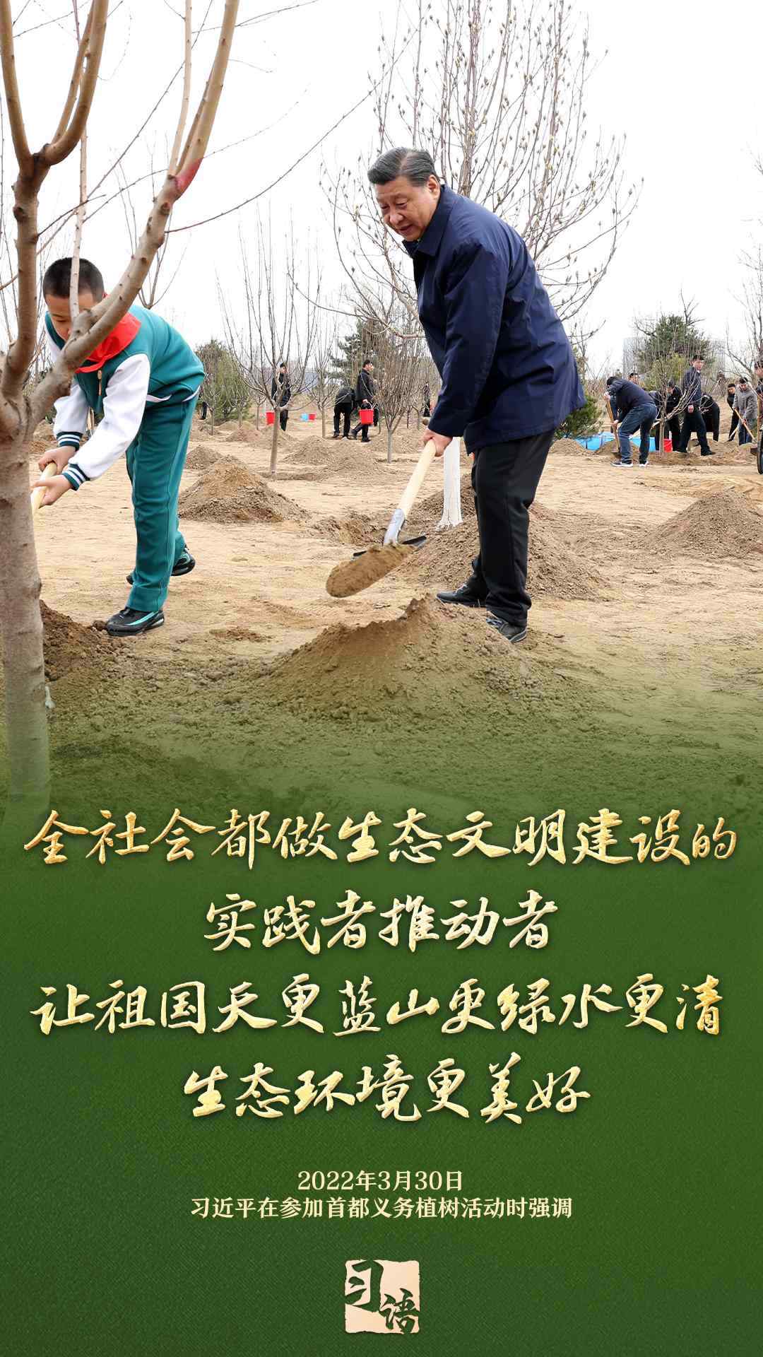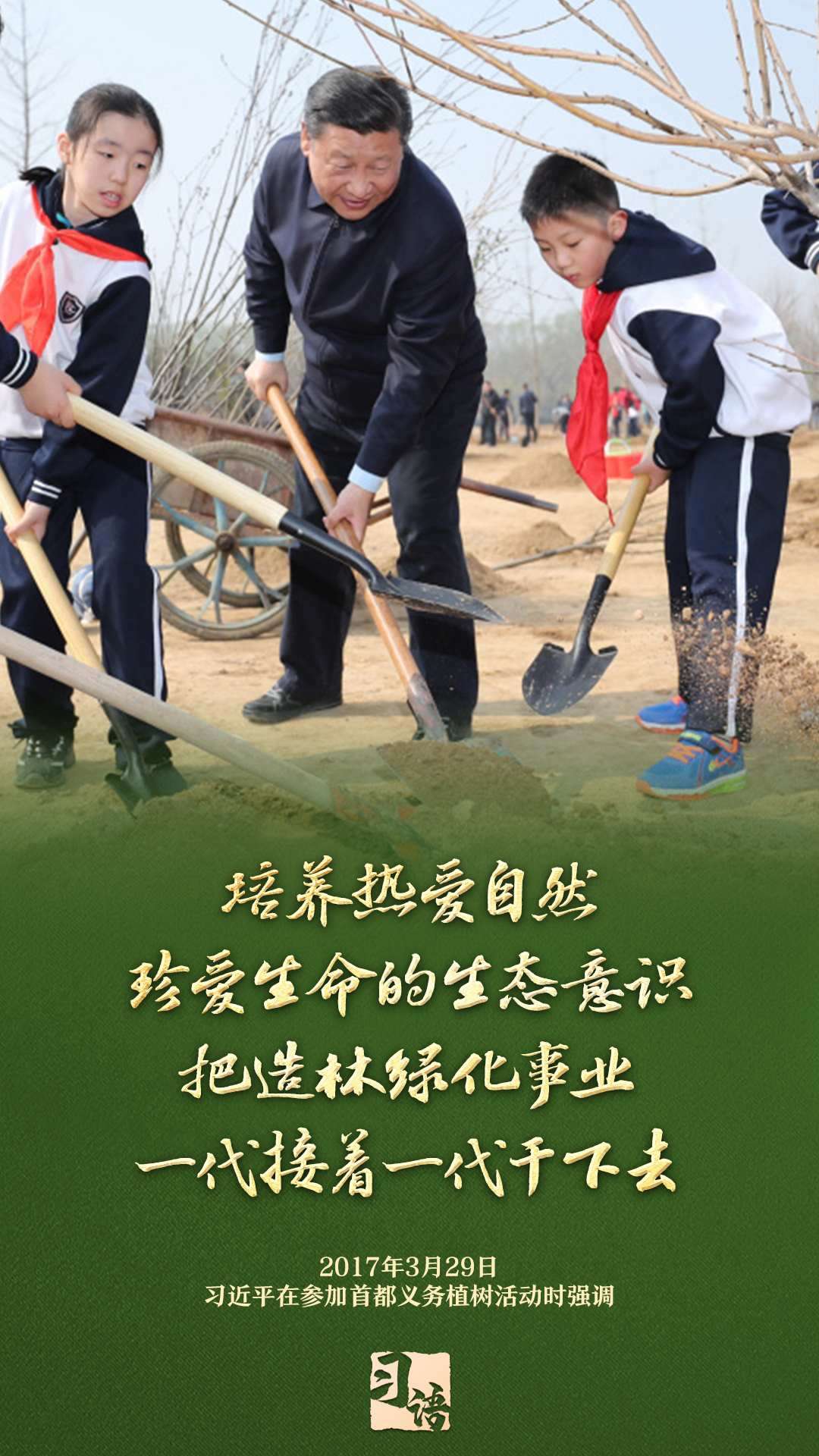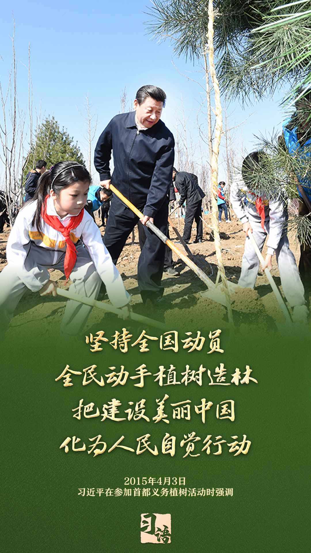 “植樹(shù)造林是一件很有意義的事情,是一項(xiàng)功在當(dāng)代、利在千秋的崇高事業(yè),要一以貫之、持續(xù)做下去。”自2013年以來(lái)的13個(gè)春天里,無(wú)論晴雨,習(xí)近平總書(shū)記都會(huì)拿起鐵鍬,與干部群眾一起參加首都義務(wù)植樹(shù)活動(dòng)。鏟土造坑、培土圍堰、提水澆灌,總書(shū)記身體力行種下綠色的希望,對(duì)擴(kuò)綠興綠護(hù)綠、建設(shè)美麗中國(guó)提出明確要求。一起學(xué)習(xí)。