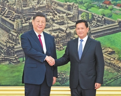 本報(bào)金邊4月17日電 (記者李婕、白元琪)4月17日晚,國家主席習(xí)近平同柬埔寨首相洪瑪奈在金邊和平大廈舉行會談。兩國領(lǐng)導(dǎo)人一致同意攜手構(gòu)建新時(shí)代全天候中柬命運(yùn)共同體,宣布2025年為“中柬旅游年”。
