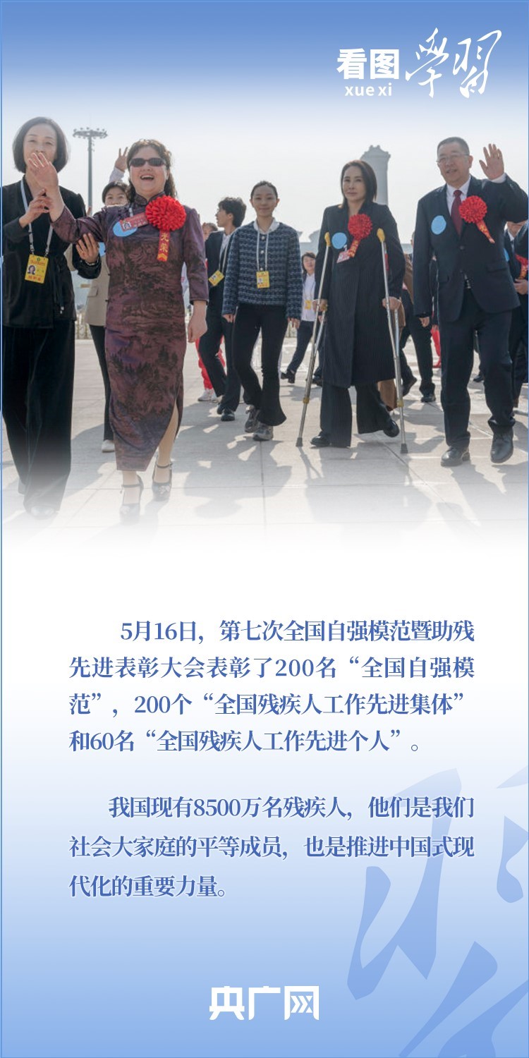 “殘疾人是推進中國式現(xiàn)代化的重要力量,也是需要格外關(guān)心、格外關(guān)注的特殊困難群體?!?月16日,第七次全國自強模范暨助殘先進表彰大會在京召開。習(xí)近平總書記作出重要指示,代表黨中央,向受表彰的全國自強模范和殘疾人工作先進集體、先進個人表示祝賀,向全國廣大殘疾人及其親屬、殘疾人工作者致以問候。