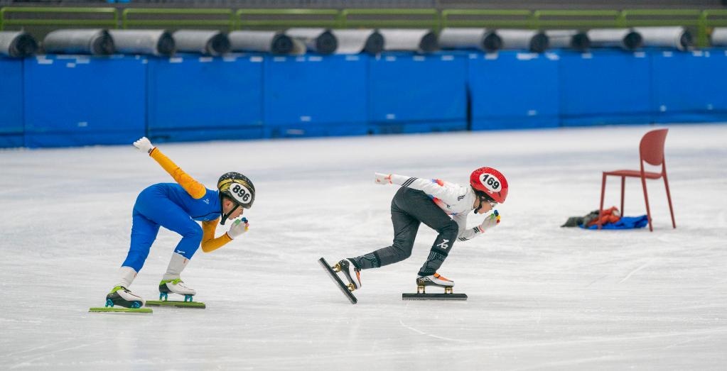 2月11日,在北京市昌平區(qū)世紀(jì)星國際冰雪體育中心,參加集訓(xùn)的小隊(duì)員們進(jìn)行短道速滑訓(xùn)練。新華社記者才揚(yáng)攝