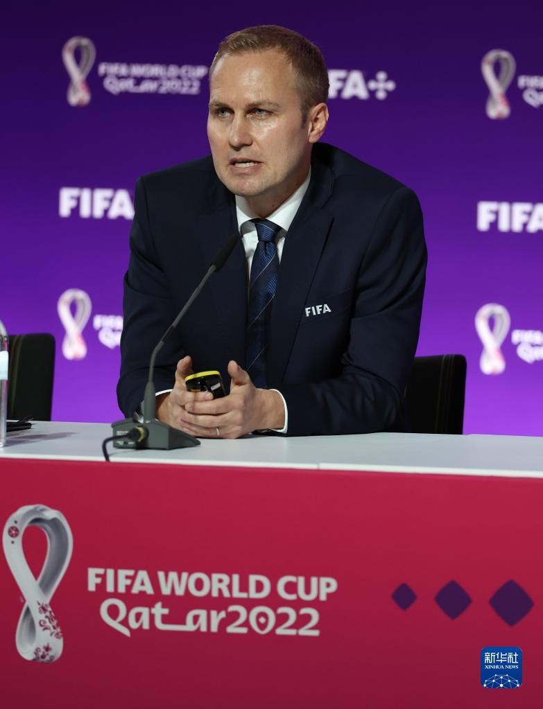 11月18日,國(guó)際足聯(lián)主席因凡蒂諾在通氣會(huì)上。新華社記者 賈浩成 攝