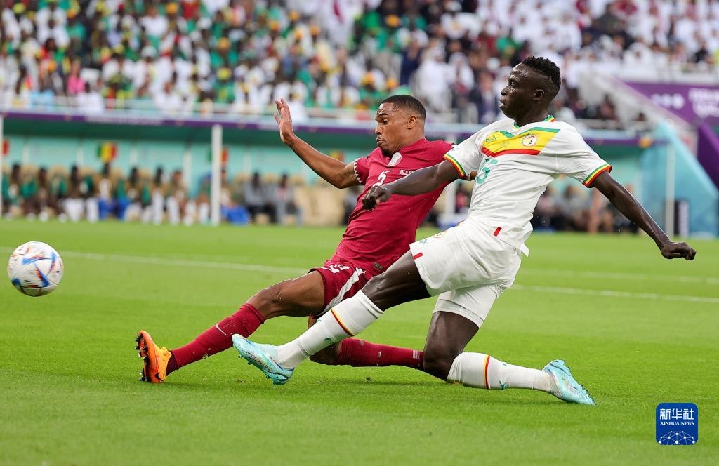 易邊再戰(zhàn),卡塔爾隊(duì)再遭重創(chuàng)。開場僅3分鐘,迪德希歐利用角球機(jī)會(huì),搶前點(diǎn)頭球破門,塞內(nèi)加爾隊(duì)2:0領(lǐng)先??ㄋ栮?duì)如夢(mèng)方醒,開始在主場觀眾的助威聲中組織反擊。第62分鐘,阿里在弧頂一腳兜射直奔球門左下角,不過塞內(nèi)加爾門將門迪做出精彩撲救,橫身將球擋出。這也是卡塔爾在本屆世界杯上第一腳打在門框范圍內(nèi)的射門。