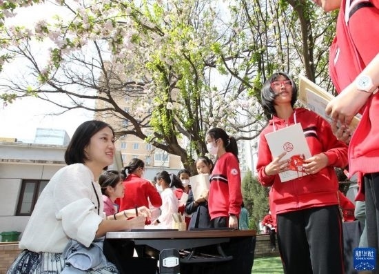 當(dāng)日,北師大實(shí)驗華夏女子中學(xué)舉辦以“春和”為主題的第二屆“海棠詩會”。師生們選取有關(guān)“春天”“和煦”“生機(jī)”“美好”的詩歌,在校園的海棠樹下賞析吟誦,共享詩歌之美,傳承中華優(yōu)秀傳統(tǒng)文化。