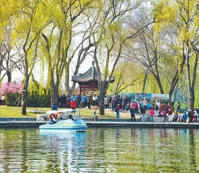 3月30日,市民游客在陶然亭公園泛舟、賞花,感受春天的氣息。本報記者 賀 勇攝