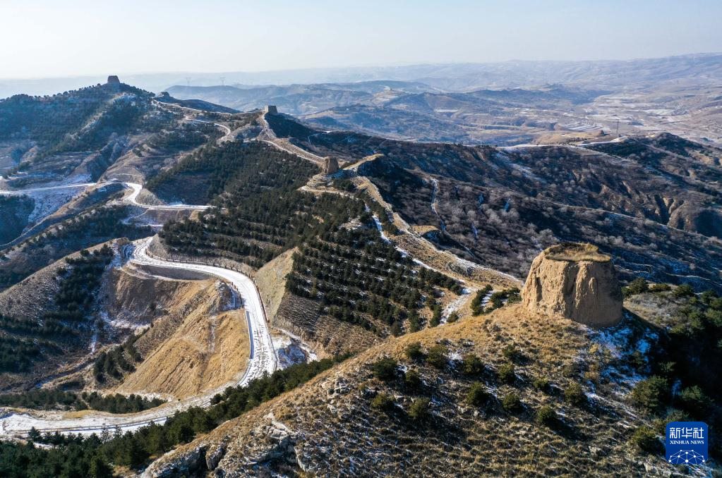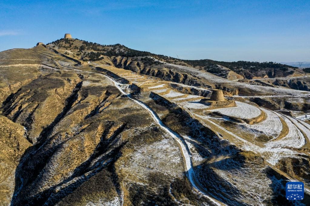 這是1月16日拍攝的內(nèi)蒙古清水河縣栜木塔長(zhǎng)城(無(wú)人機(jī)照片)。