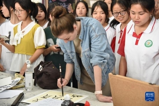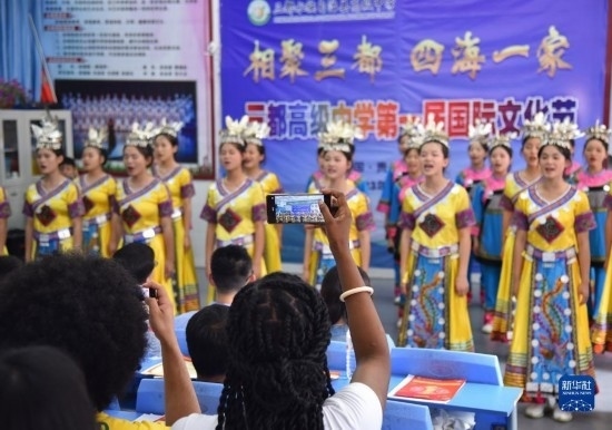 近日,“邂逅中國”來華留學(xué)生社會(huì)實(shí)踐活動(dòng)在貴州舉行。6月5日,來自突尼斯、巴基斯坦、老撾、巴西、印度尼西亞等國家的20名來華留學(xué)生來到貴州省黔南布依族苗族自治州三都水族自治縣的三都高級中學(xué),和學(xué)生們一起參加該校舉行的第一屆國際文化節(jié)。