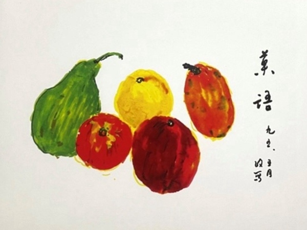 農(nóng)歷進(jìn)入了立夏,桃李遍天下的李政道,對(duì)著面前果盤(pán)里紅黃綠紫的水果,畫(huà)了一張名為《果語(yǔ)》的寫(xiě)生畫(huà)寄給鄭志鵬。在那個(gè)純真的時(shí)代,在這張小小的賀卡上,沒(méi)有祝福文字,只有簡(jiǎn)潔的藝術(shù)表達(dá)和深切的內(nèi)心感受。這色彩豐富的《果語(yǔ)》,不知包含著多少祝福和希望啊!