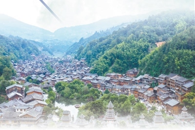貴州省黎平縣肇興侗寨景色。