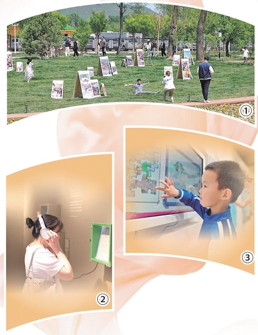 圖①:辛莊村藝術草坪上,游客在參觀打卡。