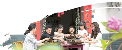 湖北秭歸,家人團(tuán)聚包粽子。