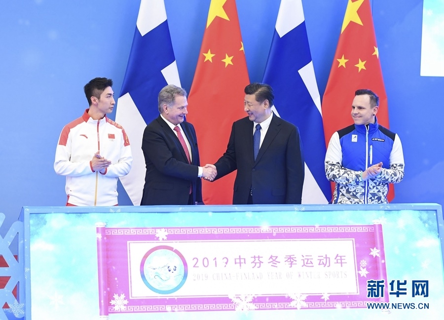 1月14日,國(guó)家主席習(xí)近平同芬蘭總統(tǒng)尼尼斯托在北京共同出席“2019中芬冬季運(yùn)動(dòng)年”啟動(dòng)儀式。 新華社記者申宏攝