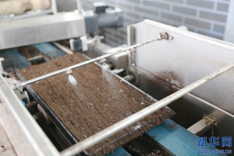 自動(dòng)播種機(jī)通過(guò)流水線方式完成播種、澆水流程。新華網(wǎng)曹楨攝