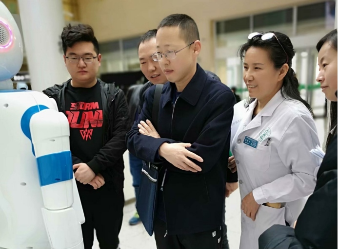 趙俊葉與患者一起體驗導(dǎo)診機器人預(yù)約
