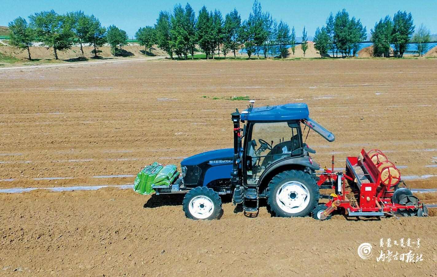 裝有北斗導(dǎo)航系統(tǒng)的拖拉機(jī)在起壟、覆膜。