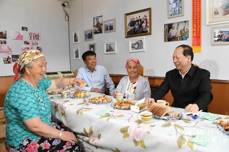 7月6日,自治區(qū)黨委書記、人大常委會主任石泰峰深入呼倫貝爾市額爾古納市恩和俄羅斯族民族鄉(xiāng),走進熱尼列巴坊了解經(jīng)營情況。內蒙古日報社融媒體記者 袁永紅 攝