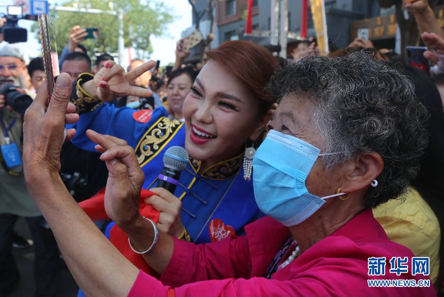 開幕式上歌手烏蘭圖雅與觀眾互動。新華網 李倩攝