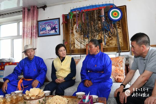 8月10日,自治區(qū)黨委副書記、自治區(qū)主席布小林來(lái)到呼倫貝爾市新巴爾虎左旗新寶力格蘇木貢諾爾嘎查黨員中心戶哈斯圖雅家,了解黨員中心戶帶動(dòng)牧戶開展黨組織生活和牧業(yè)生產(chǎn)情況。內(nèi)蒙古日?qǐng)?bào)記者 金泉 攝