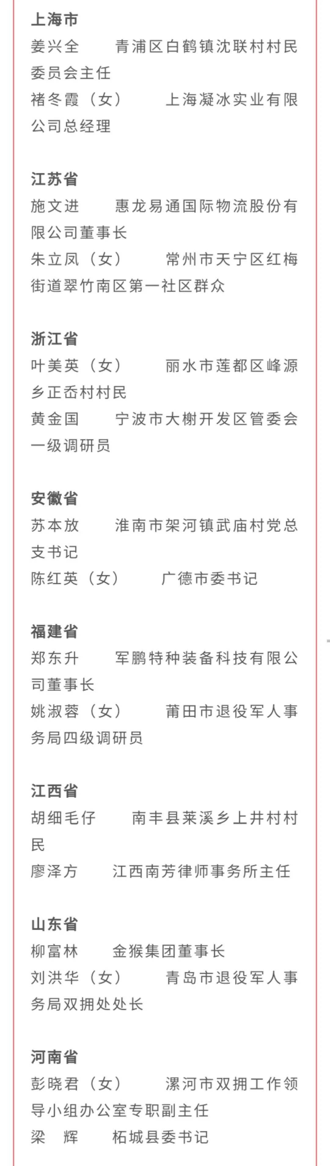 全國雙擁模范城(縣)、全國愛國擁軍模范單位和擁政愛民模范單位、全國愛國擁軍模范和擁政愛民模范名單