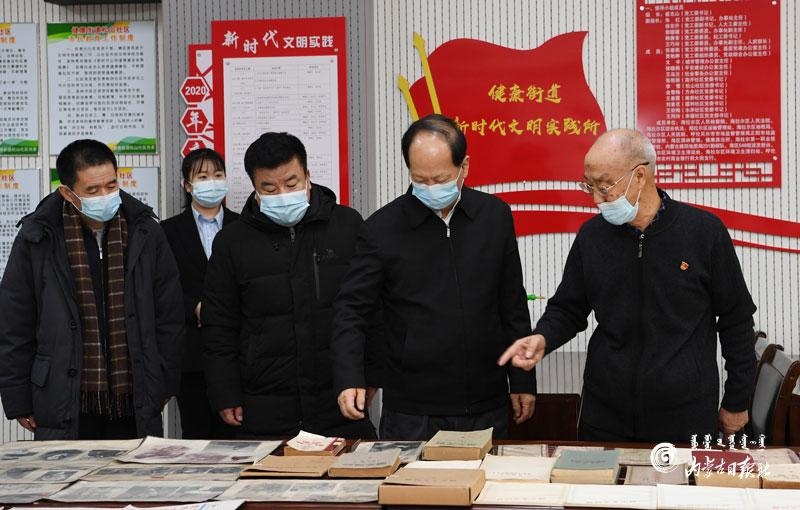 基層黨建是石泰峰此行調(diào)研的一個重點。他來到海拉爾區(qū)松山社區(qū),與社區(qū)黨委負責人等深入交流,詳細了解基層黨建工作開展情況。在社區(qū)紅色驛站,石泰峰認真聽取紅色教育帶頭人李汝清老人的講解,興致勃勃地參觀老人的紅色收藏,他說,社區(qū)是基層黨建的重要陣地,通過紅色收藏記錄黨的歷史、傳承革命精神、弘揚紅色文化很有意義、值得稱贊。今年是我們黨成立100周年,廣大基層黨組織要利用各種資源加強黨史、新中國史、改革開放史、社會主義發(fā)展史宣傳教育,讓人們始終牢記今天的幸福生活是怎么來的,始終不渝感黨恩念黨好,堅定不移聽黨話跟黨走。要充分發(fā)揮我們的制度優(yōu)勢和組織優(yōu)勢,切實做好服務(wù)群眾、宣傳群眾、教育群眾、組織群眾、引領(lǐng)群眾的工作,做好統(tǒng)一思想、統(tǒng)一行動的工作,讓黨中央精神通過基層黨組織的工作變成人民群眾的自覺行動,讓基層黨組織的政治功能和組織力不斷強起來。在社區(qū)黨群服務(wù)中心,石泰峰看到各個窗口的工作井然有序,他強調(diào),要積極創(chuàng)新基層黨建和基層治理工作,打通“最后一公里”,能在社區(qū)辦的事情盡量實行“一站式”辦理,更加便捷高效地服務(wù)人民群眾,更加及時有效地化解社會矛盾。
