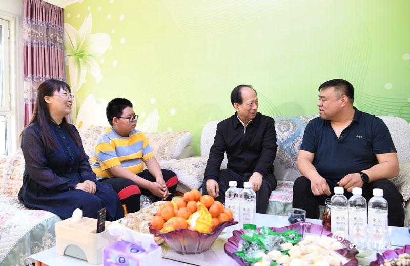 1月6日,自治區(qū)黨委書記、人大常委會主任石泰峰來到呼倫貝爾市海拉爾區(qū)神寶小區(qū),慰問自治區(qū)勞動模范于景斌。內(nèi)蒙古日報社融媒體記者 袁永紅 攝