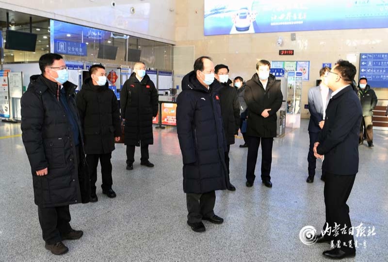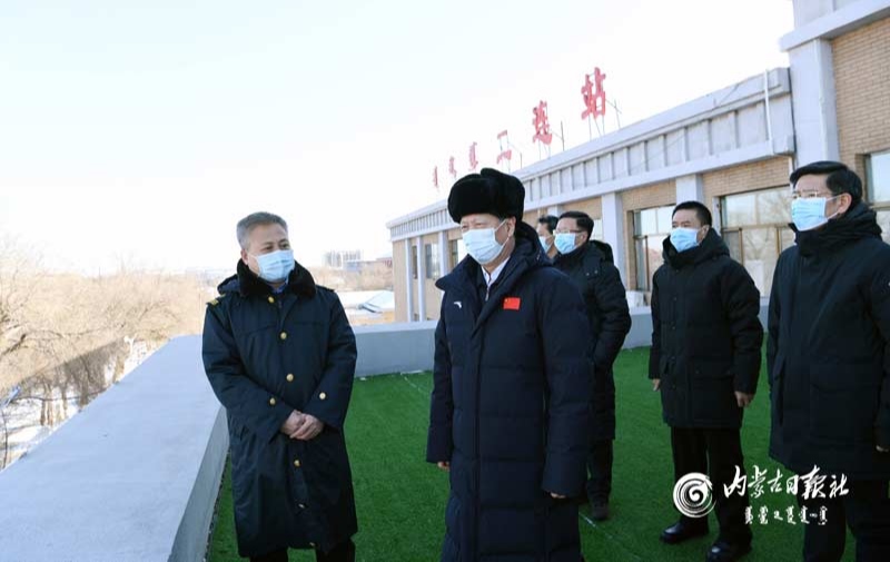 2月4日,自治區(qū)黨委書記、人大常委會主任石泰峰來到二連浩特鐵路車站,了解疫情防控和中歐班列運行情況。內蒙古日報社融媒體記者袁永紅攝