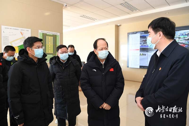 2月4日,自治區(qū)黨委書記、人大常委會主任石泰峰來到二連浩特市環(huán)宇物流園區(qū),了解疫情防控和作業(yè)運行情況。內蒙古日報社融媒體記者袁永紅攝