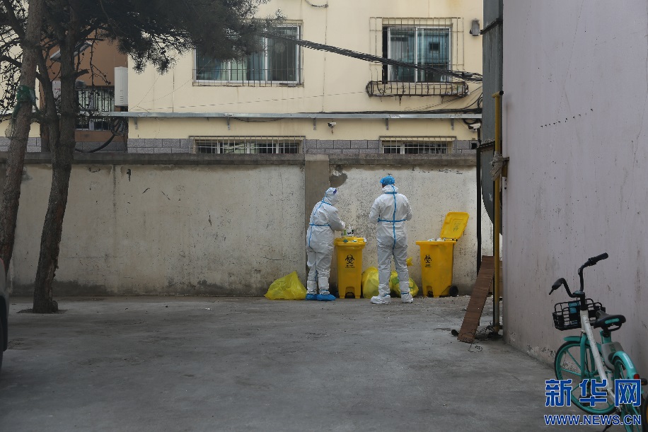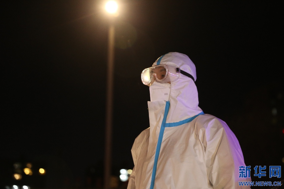 經(jīng)過(guò)連日配合,籍東斌和運(yùn)送樣本的搭檔形成了默契,一個(gè)動(dòng)作一個(gè)眼神就知道搭檔需要什么幫助?!八⊥陿颖镜怯浲曛?,我要幫助她做消殺?!奔畺|斌說(shuō)。新華網(wǎng)發(fā) 李倩攝