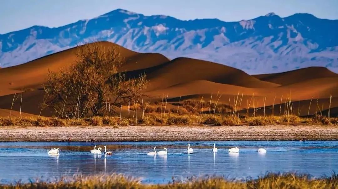 巴丹吉林沙漠年降水量不足40毫米,但是沙漠中的湖泊竟然多達(dá)100多個(gè)。高聳入云的沙山,神秘莫測的鳴沙,靜謐的湖泊、濕地,構(gòu)成了巴丹吉林沙漠獨(dú)特的迷人景觀,于2005年被《中國國家地理》雜志評(píng)為中國最美麗的沙漠,每年吸引了上萬名國內(nèi)外游客前來觀光。
