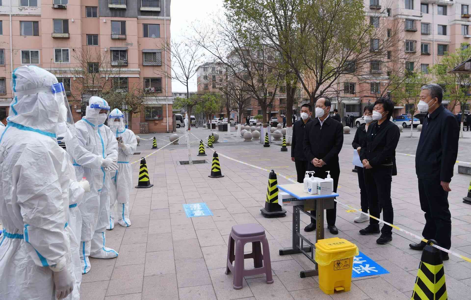 4月26日,自治區(qū)黨委書記、人大常委會主任石泰峰來到包頭市九原區(qū)龍苑小區(qū)B區(qū),了解疫情防控封控情況。內(nèi)蒙古日報社融媒體記者 袁永紅攝