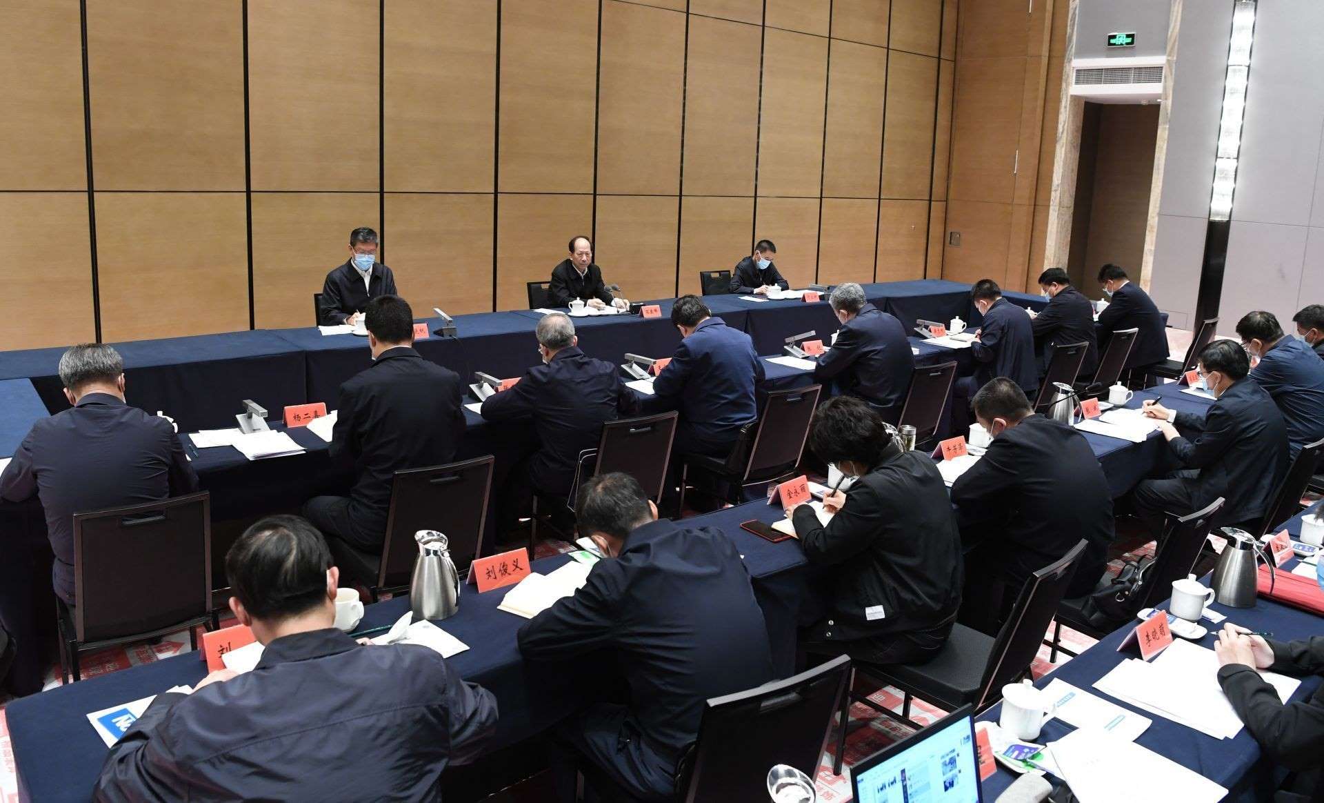4月26日,自治區(qū)黨委書記、人大常委會主任石泰峰在包頭市疫情防控指揮部主持召開座談會,聽取包頭市疫情防控工作匯報并講話。內(nèi)蒙古日報社融媒體記者 袁永紅攝
