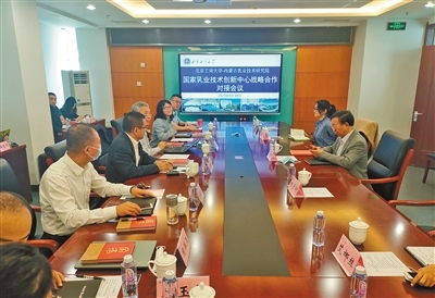 國家乳業(yè)技術(shù)創(chuàng)新中心團(tuán)隊(duì)與任發(fā)政院士團(tuán)隊(duì)交流。