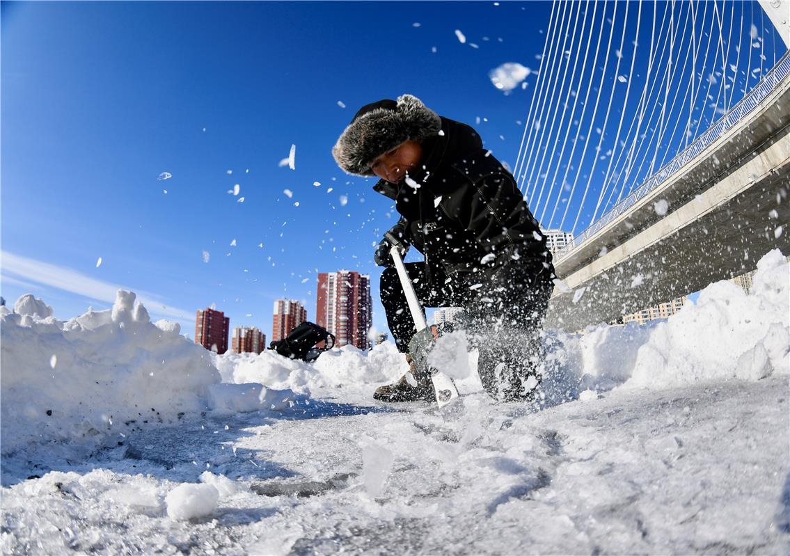 陳艷東每天只能利用中午最暖和的時(shí)間來雕刻