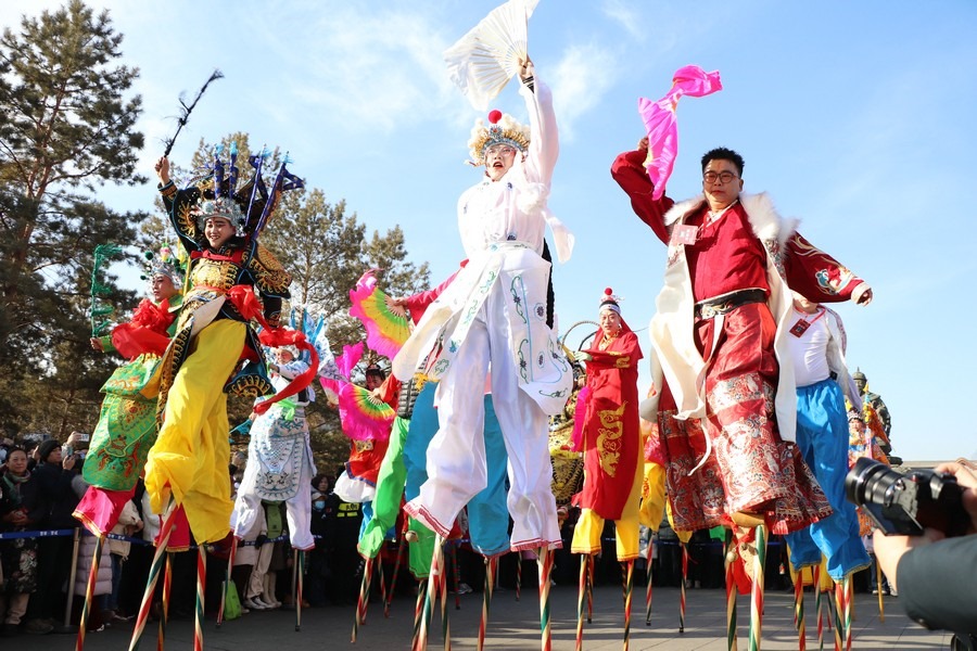 現(xiàn)場人潮涌動,歡聲笑語此起彼伏。扭秧歌隊(duì)伍身著色彩斑斕的服裝,手持彩扇,隨著歡快的音樂節(jié)奏,邁出輕盈的步伐,每一個(gè)動作都充滿了力量感和韻律感。他們的表情歡快,笑容燦爛,將歡樂傳遞給每一位觀眾。與此同時(shí),踩高蹺也吸引了眾多觀眾的目光。演員們踩著高高的木蹺,身著華麗的戲服,扮演著各種角色,自如地行走、跳躍,引得觀眾陣陣喝彩。